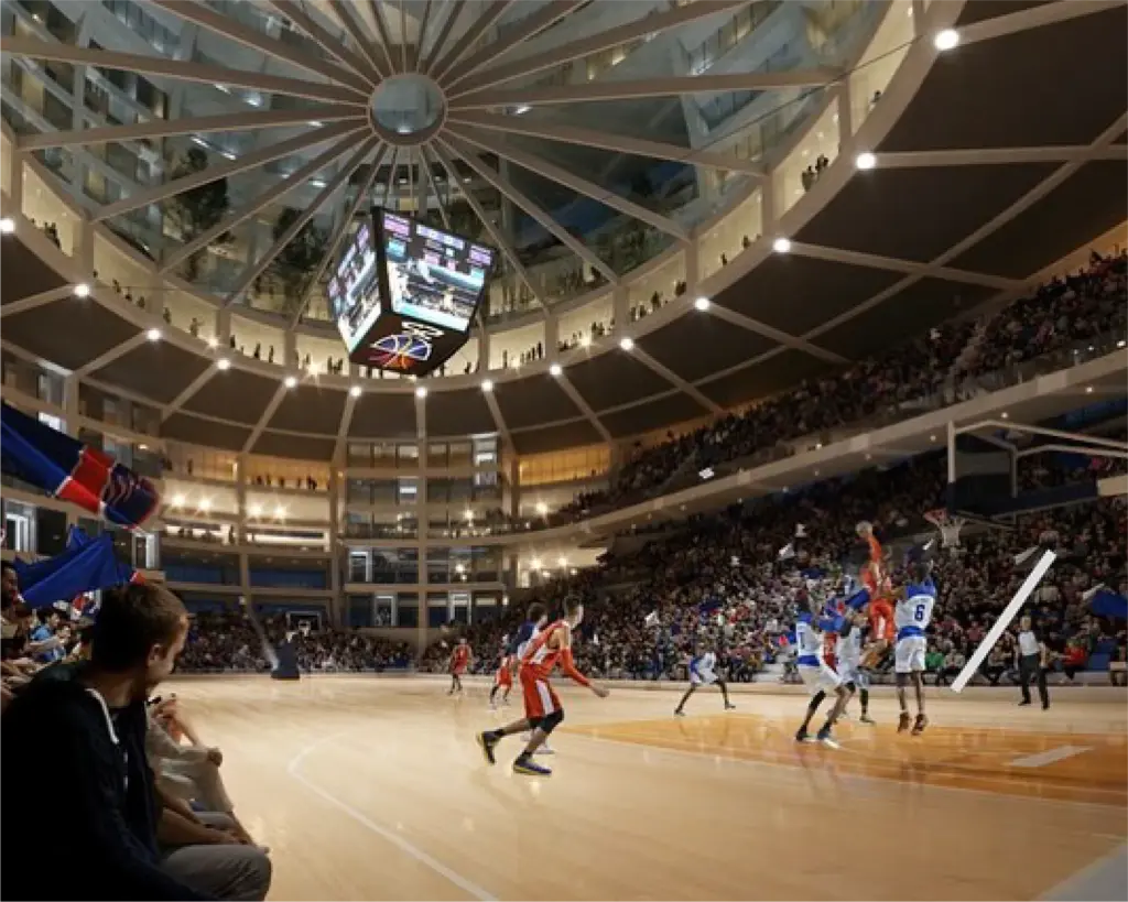 Kompleksi sportiv i ri, jo shumë larg nga qendra e Tiranes, parashikon që kompleksi të marrë formën e një topi basketbolli, duke kombinuar sportin me identitetin vizual dhe urban të qytetit.