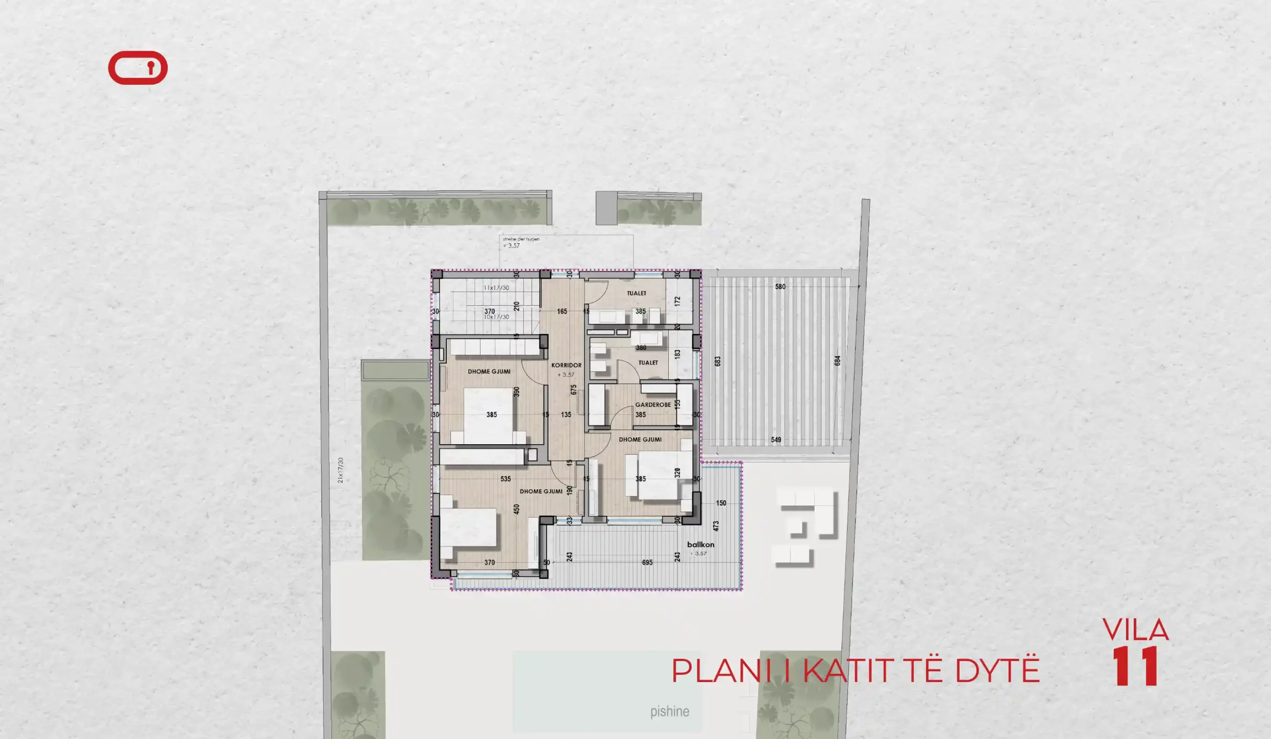 - Vilë 3-katëshe me sipërfaqe ndërtimi 376.8 m² dhe oborr privat të gjelbër.