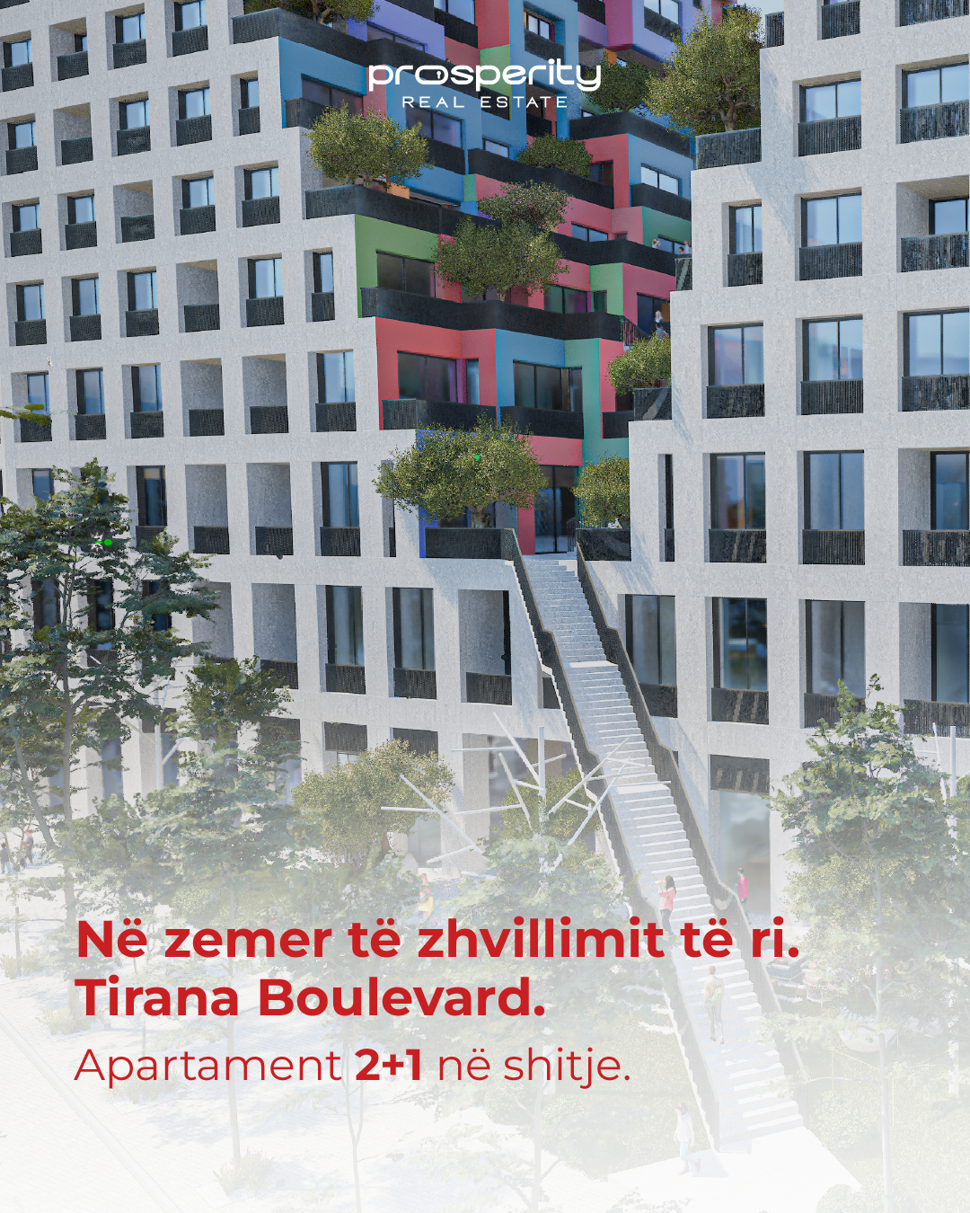 Prosperity ofron për shitje apartament me 2 dhoma gjumi, i pozicionuar në katin e 7 të një godine 25-katëshe në projektin Tirana Boulevard, buzë Bulevardit të Ri në Tiranë.