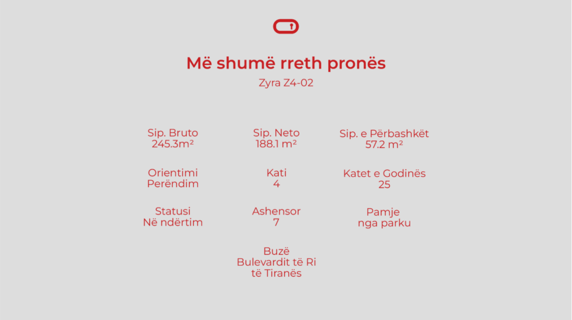 Me një sipërfaqe bruto prej 245.3 m², kjo hapësirë përbëhet nga: