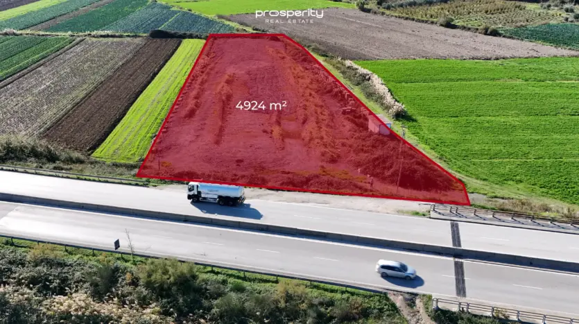 Prosperity Real Estate ofron një parcelë toke me sipërfaqe 4,924 m², e pozicionuar direkt buzë autostradës Lushnje–Fier, një nga korridoret më të rëndësishme lidhëse në Shqipëri.