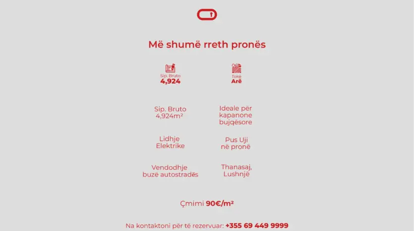 Kjo tokë përfaqëson një mundësi ideale për investitorë që kërkojnë siguri, infrastrukturë të gatshme dhe pozicion me perspektivë të lartë zhvillimi.